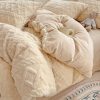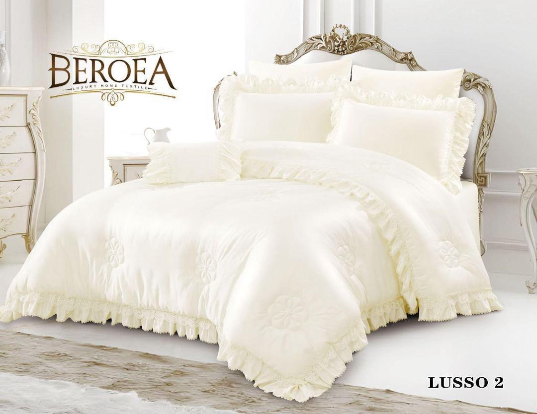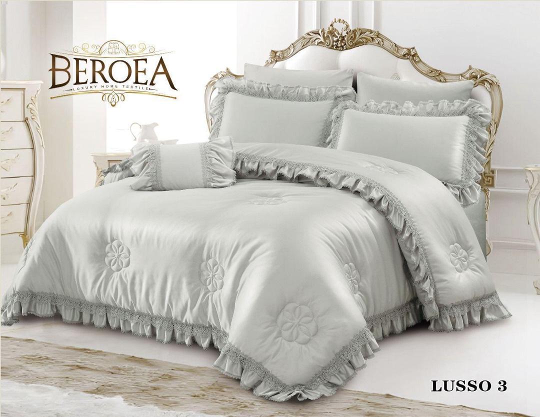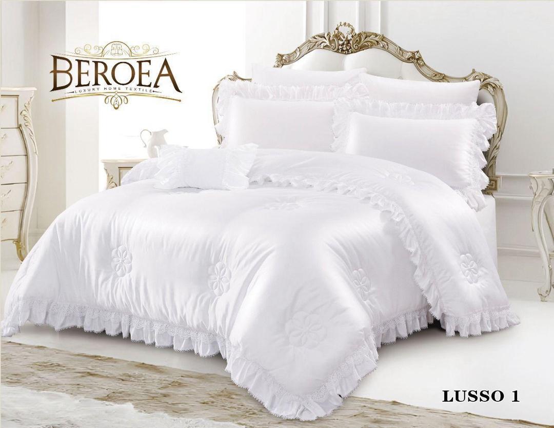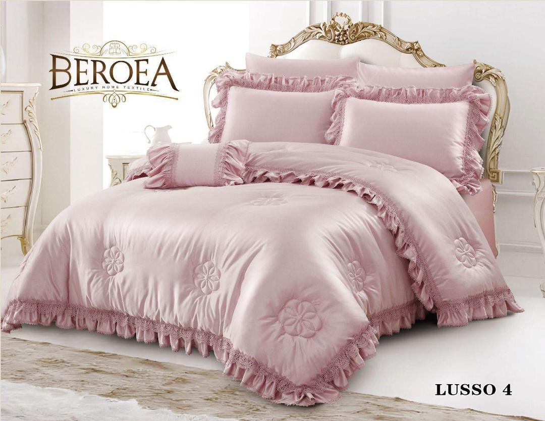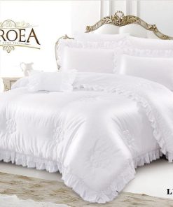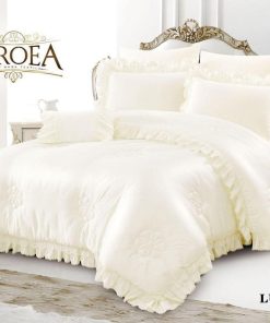 The delicate lace accents on the quilt and pillow shams add a touch of sophistication and romantic charm to your bedroom decor.